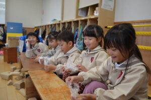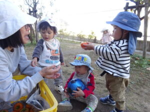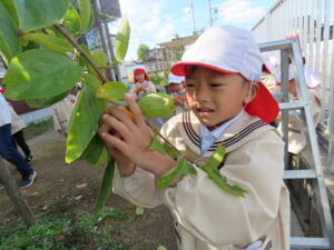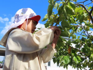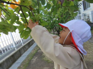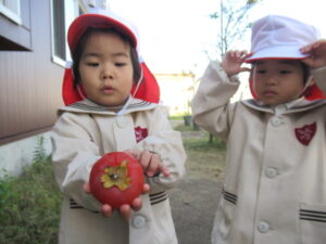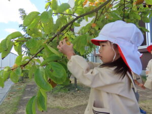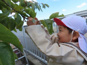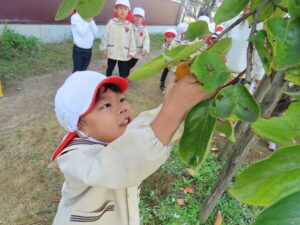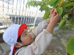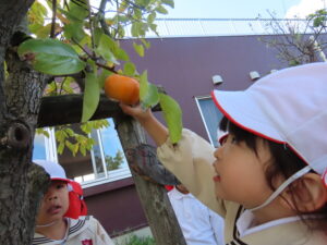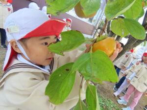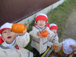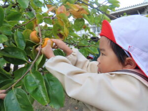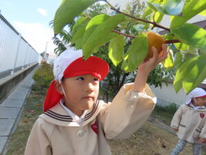 幼稚園の柿を収穫しました。