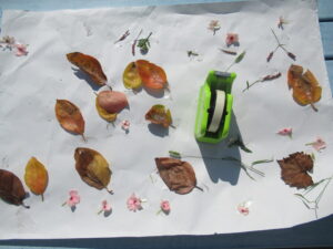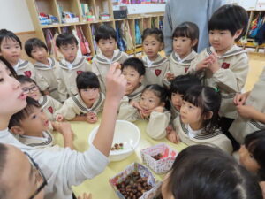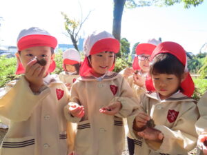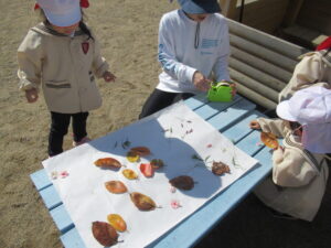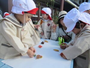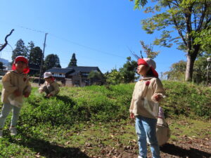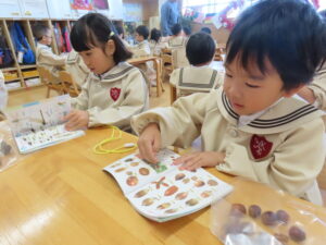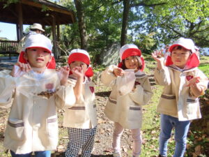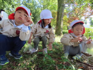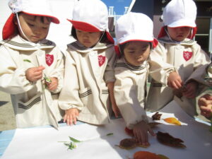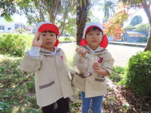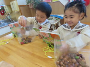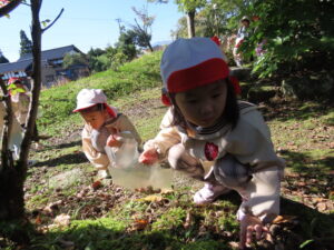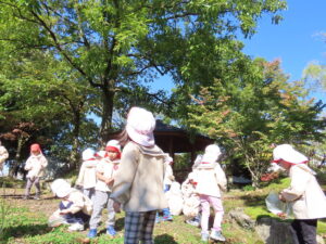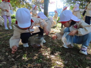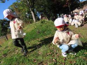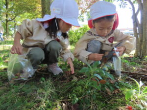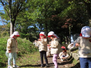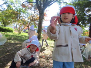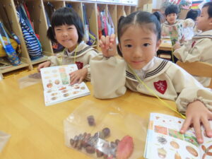 講演ではドングリや落ち葉を拾いました。