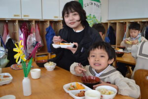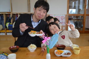 一緒に給食も食べました。