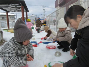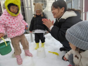 雪遊びも少しずつ慣れてきました。