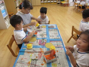 のりや色紙を使って製作をしました。