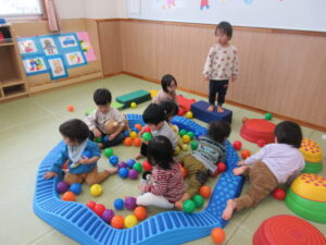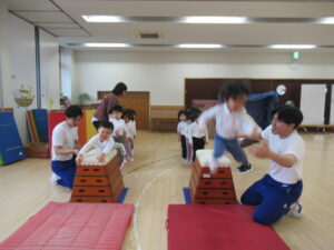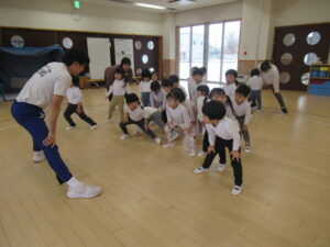 指導員の方からいろいろな運動遊びを教えて