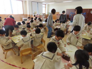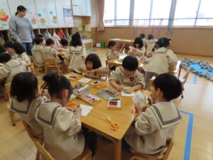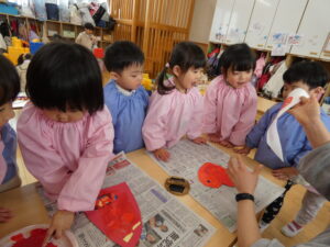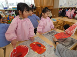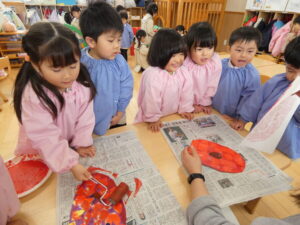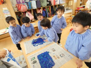 昨日から引き続いて紙版画をしました。