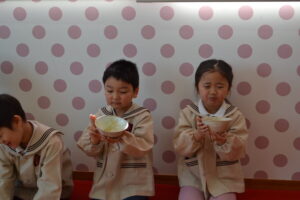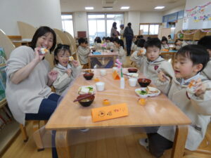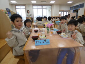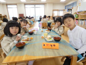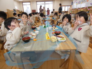 一緒に給食も食べました。