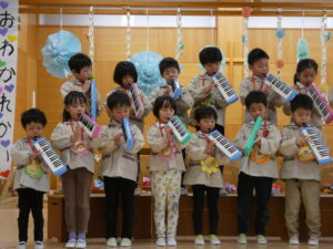 お礼に鍵盤ハーモニカの演奏と歌