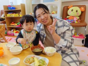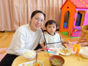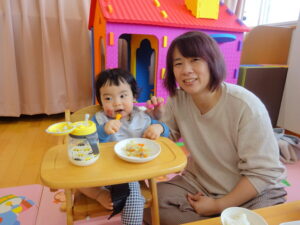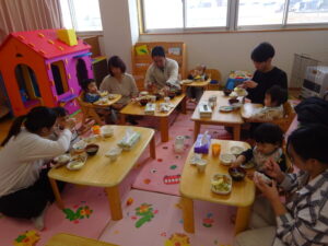 保護者の方に来ていただき一緒に給食を