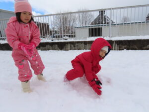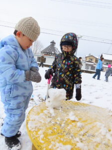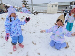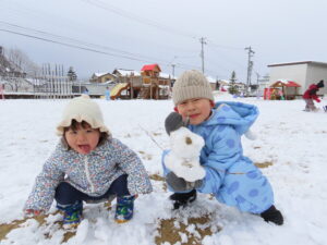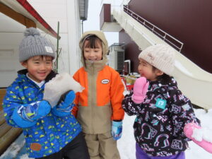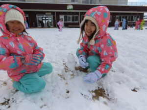 グラウンドで雪遊びをしました♬