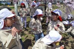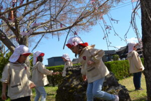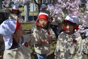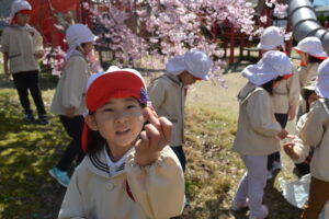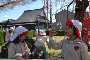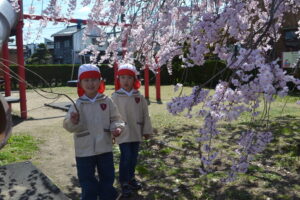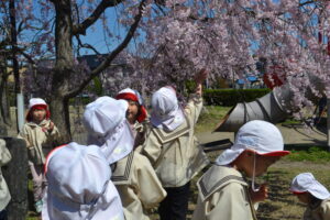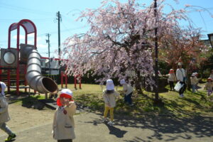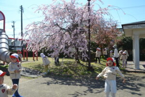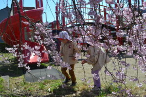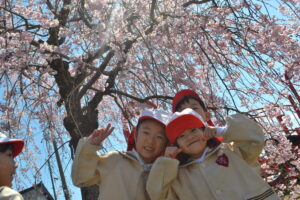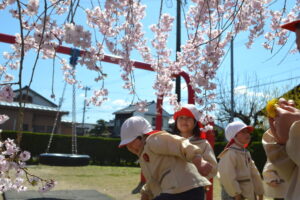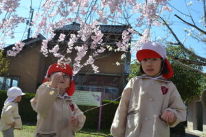 幼稚園の近くで桜が咲いているところに
